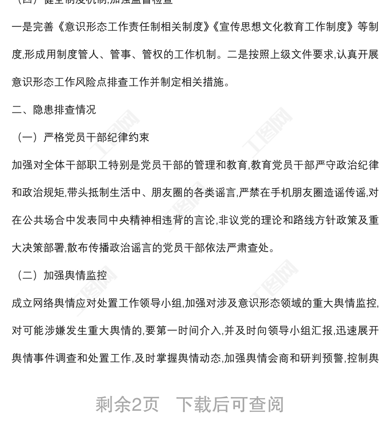 工圖網(wǎng)提供2022年網(wǎng)絡(luò)意識形態(tài)安全風(fēng)險(xiǎn)排查報(bào)告供會員免費(fèi)下載。更多精彩黨課PPT素材,盡在工圖網(wǎng)。