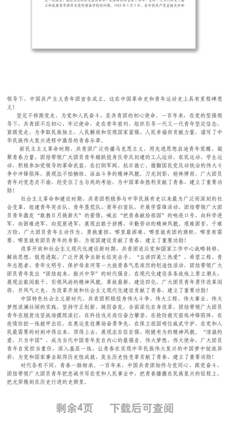 在慶祝中國共產(chǎn)主義青年團(tuán)成立100周年大會上的講話1