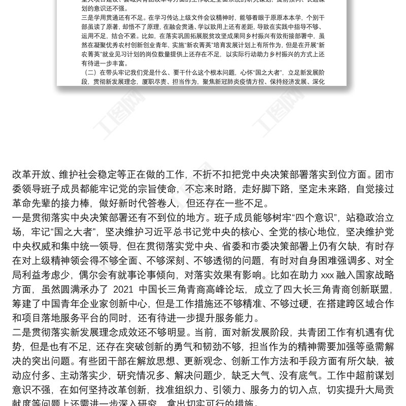 工圖網(wǎng)提供團(tuán)市委領(lǐng)導(dǎo)班子2022年專題民主生活會對照檢查材料供會員免費下載。更多精彩黨課PPT素材,盡在工圖網(wǎng)。