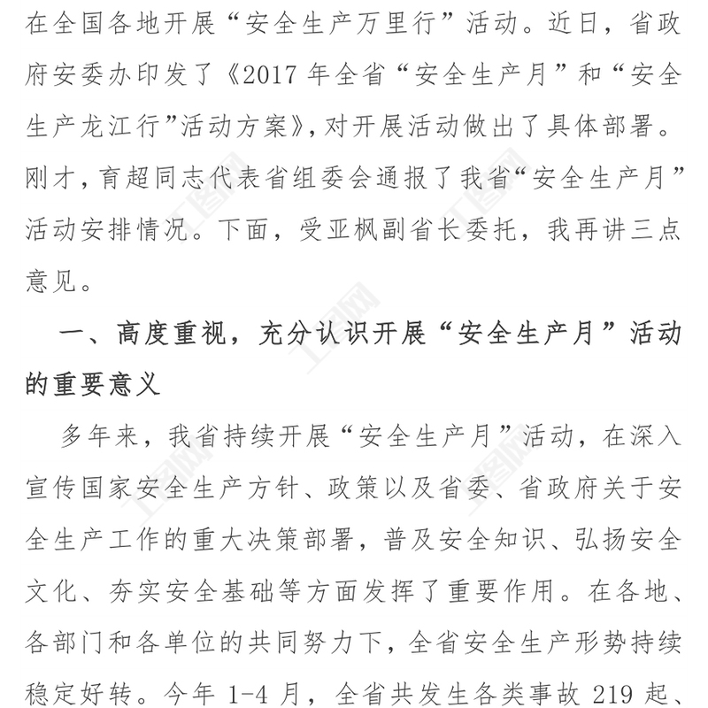工圖網(wǎng)提供在全省“安全生產(chǎn)月”和“安全生產(chǎn)龍江行”活動動員部署視頻會議上的講話供會員免費(fèi)下載。更多精彩黨課PPT素材,盡在工圖網(wǎng)。