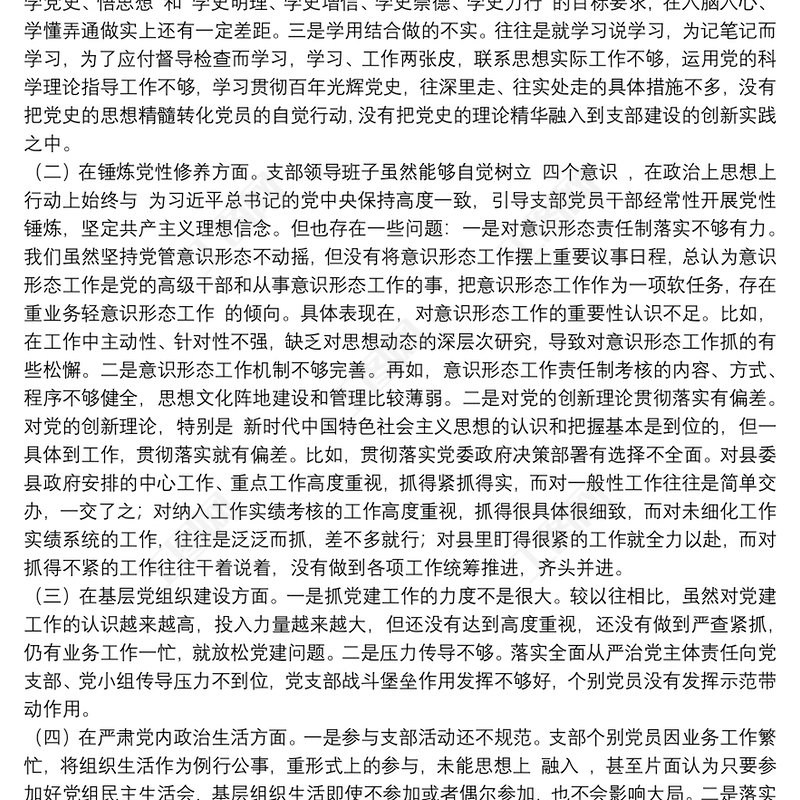 2022黨史學(xué)習(xí)教育五個(gè)方面民主生活會(huì)對(duì)照材料