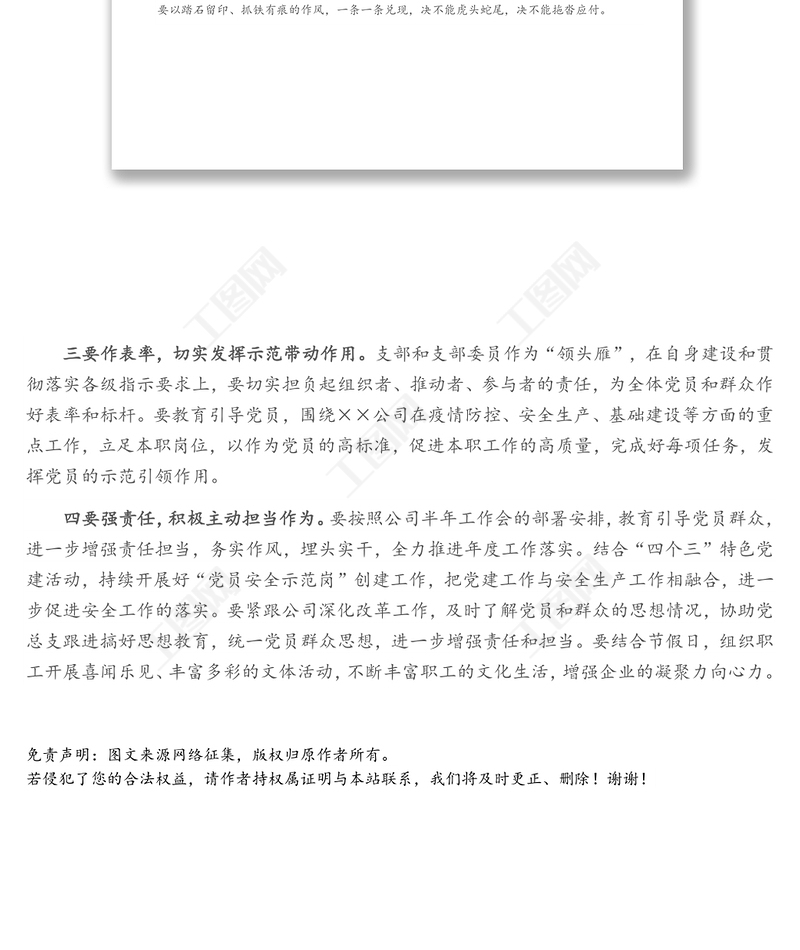 工圖網(wǎng)提供國(guó)企黨委書(shū)記參加下屬公司支部專題組織生活會(huì)點(diǎn)評(píng)材料供會(huì)員免費(fèi)下載。更多精彩黨課PPT素材,盡在工圖網(wǎng)。