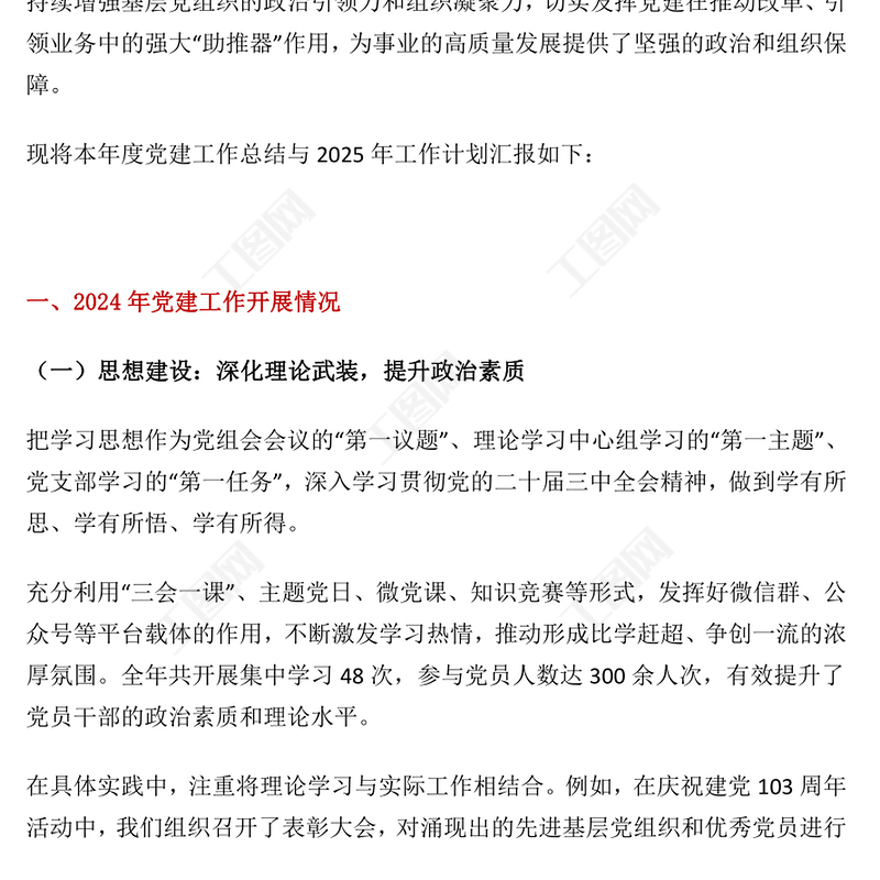 工圖網(wǎng)提供2024年黨建工作總結(jié)及2025年黨建工作計(jì)劃匯報(bào)PPT課件(講稿)供會(huì)員免費(fèi)下載。更多精彩黨課PPT素材,盡在工圖網(wǎng)。