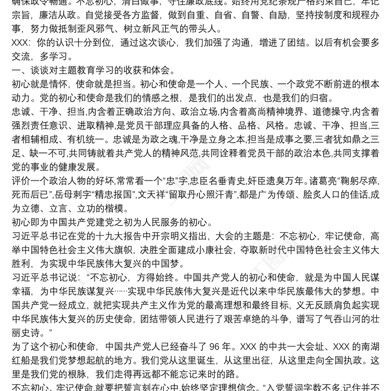 2019不忘初心黨員談心談話記錄3篇