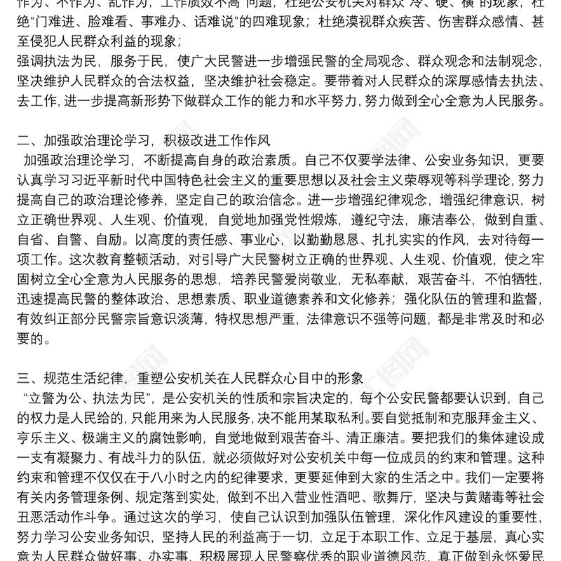 工圖網(wǎng)提供2021年公安民警政法隊伍教育整頓心得體會研討發(fā)言材料供會員免費下載。更多精彩黨課PPT素材,盡在工圖網(wǎng)。