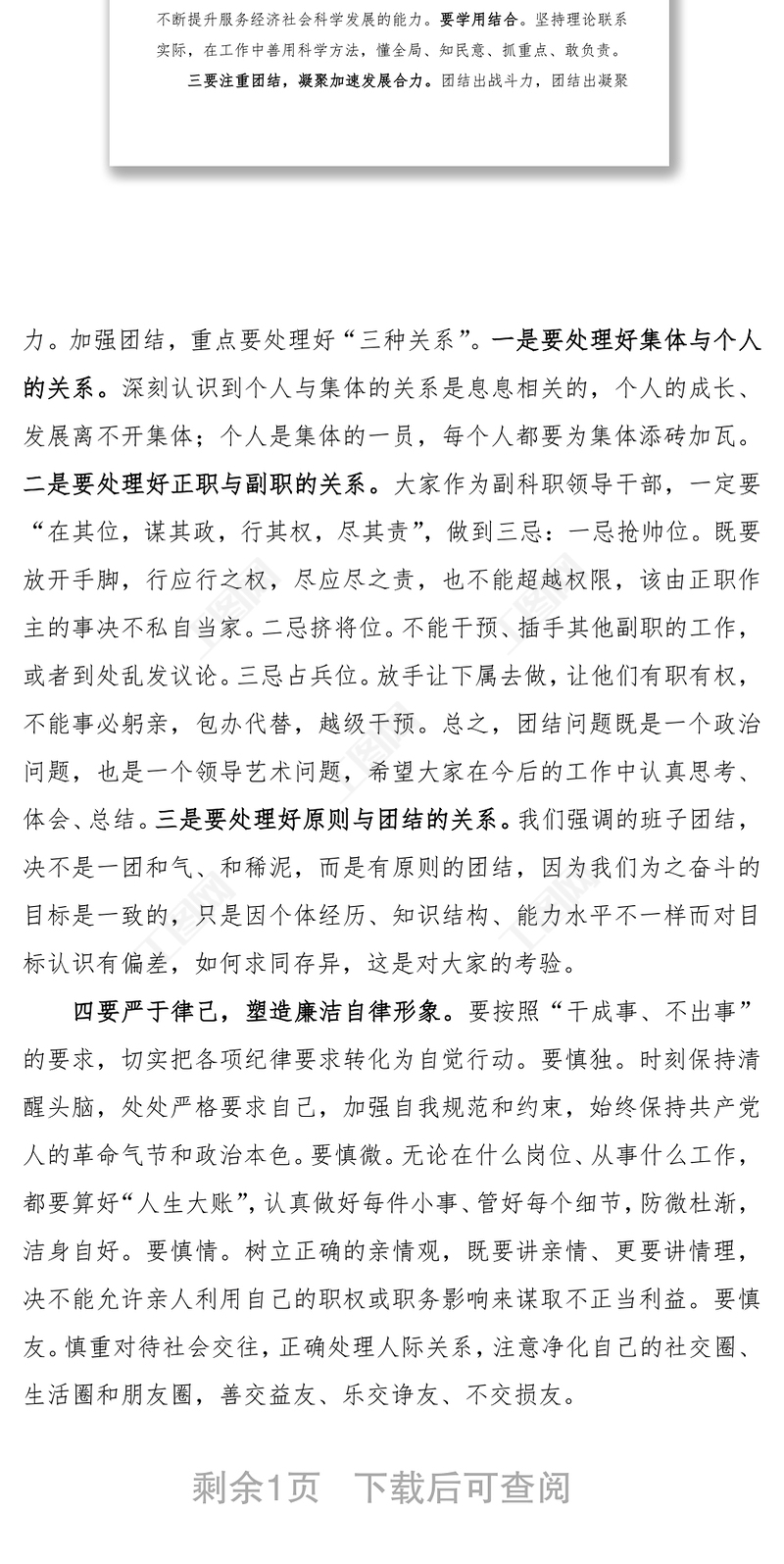 2021在新任職領導干部集體談話會上的領導講話稿范文