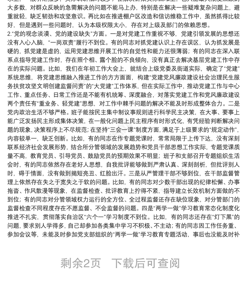 2022巡察整改專題民主生活會(huì)領(lǐng)導(dǎo)班子對照檢查材料2022年巡察整改專題民主生活會(huì)對照檢查材料剖析模板2022巡察整改專題民主生活會(huì)個(gè)人材料2021一案一整改專題民主生活會(huì)對照檢查材料2021民主生活會(huì)黨支部班子對照檢查材料2022年度巡察整改專題民主生活會(huì)班子對照檢查材料2021市委巡察整改專題民主生活會(huì)方案2022巡察整改專題民主生活會(huì)要談心談話記錄2022巡察反饋問題整改專題民主生活會(huì)個(gè)人對照檢查材料2022縣教育局局長巡察整改專題民主生活會(huì)檢視剖析材料2022涉糧巡查反饋問題整改專題民主生活會(huì)個(gè)人發(fā)言2022巡察整改專題民主生活會(huì)黨委書記對照檢查材料2022巡察整改專題民主生活會(huì)黨組書記個(gè)人對照檢查材料2023新時(shí)代中國特色社會(huì)主義思想民主生活會(huì)對照檢查材料