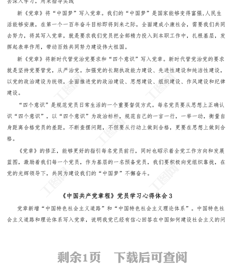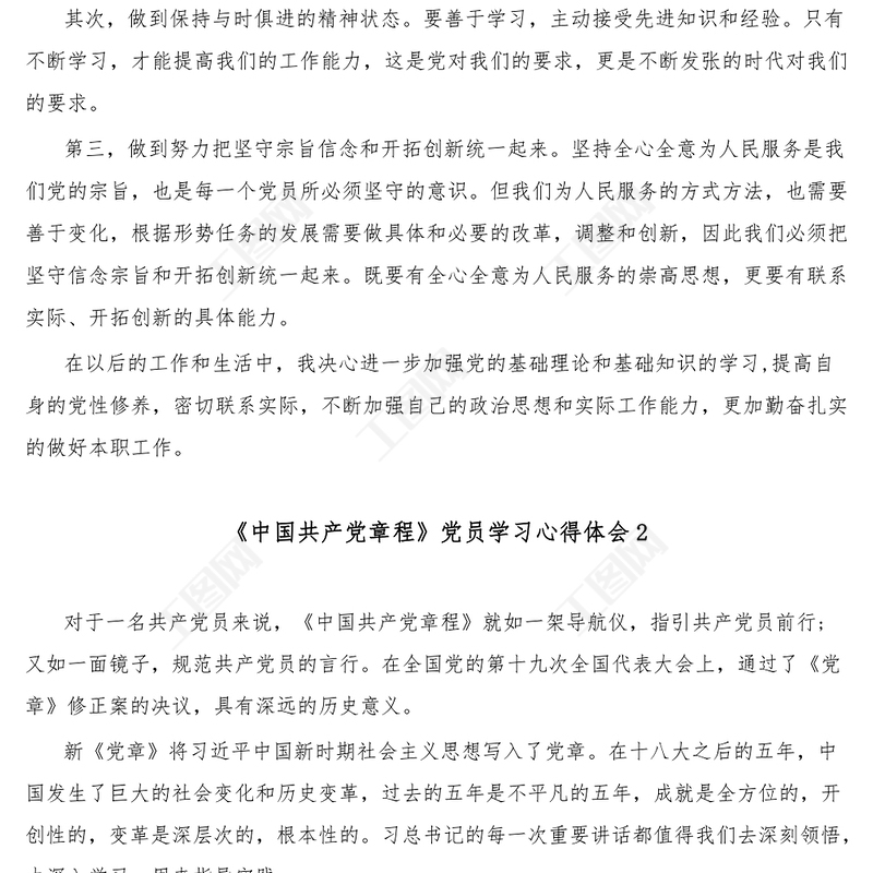 工圖網(wǎng)提供3篇《中國(guó)共產(chǎn)黨章程》黨員學(xué)習(xí)心得體會(huì)供會(huì)員免費(fèi)下載。更多精彩黨課PPT素材,盡在工圖網(wǎng)。