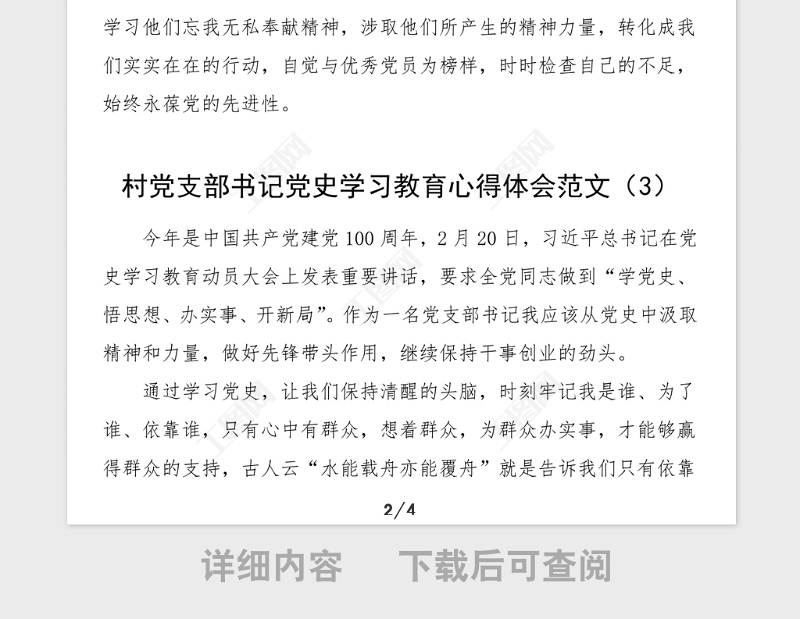 工圖網(wǎng)提供4篇村黨支部書記黨史學(xué)習(xí)教育心得體會范文4篇村干部黨史學(xué)習(xí)心得體會研討發(fā)言材料參考供會員免費下載。更多精彩黨課PPT素材,盡在工圖網(wǎng)。