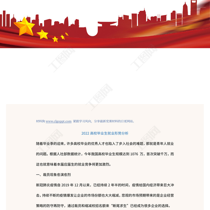 工圖網(wǎng)提供2022高校畢業(yè)生就業(yè)形勢(shì)分析PPT簡(jiǎn)潔風(fēng)畢業(yè)生就業(yè)形勢(shì)分析課件模板(講稿)供會(huì)員免費(fèi)下載。更多精彩黨課PPT素材,盡在工圖網(wǎng)。