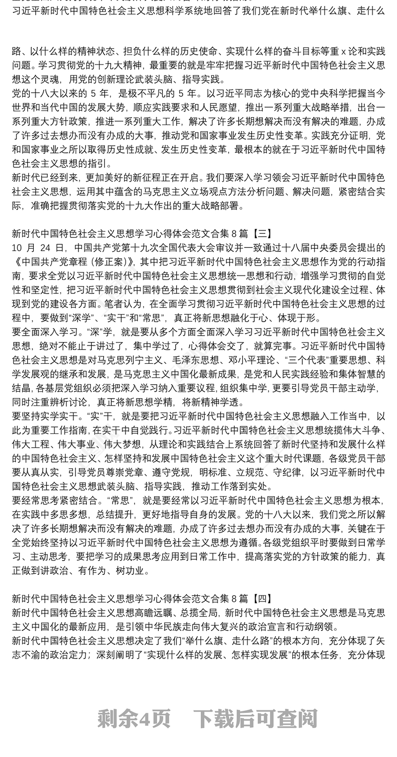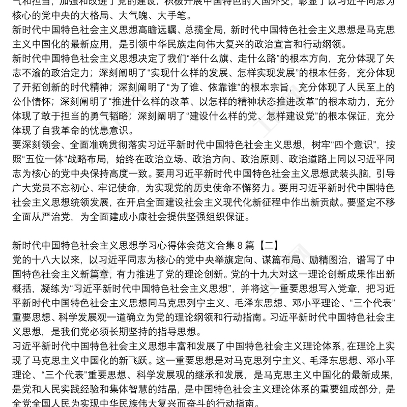 新時(shí)代中國(guó)特色社會(huì)主義思想學(xué)習(xí)心得體會(huì)范文合集8篇 Array