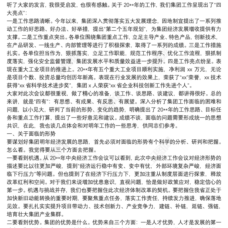 在集團公司發(fā)展工作務(wù)虛會上的講話