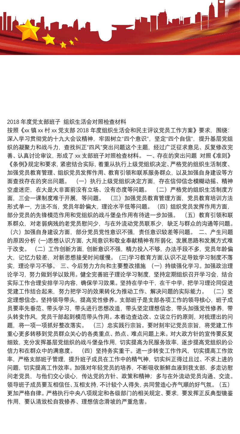 2018年度黨支部班子組織生活會(huì)對(duì)照檢查材料
