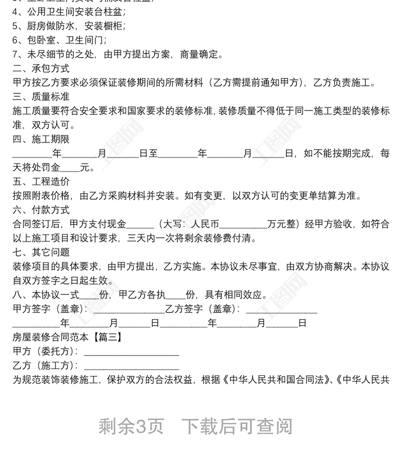 工圖網(wǎng)提供房屋裝修合同范本3篇供會員免費(fèi)下載。更多精彩黨課PPT素材,盡在工圖網(wǎng)。