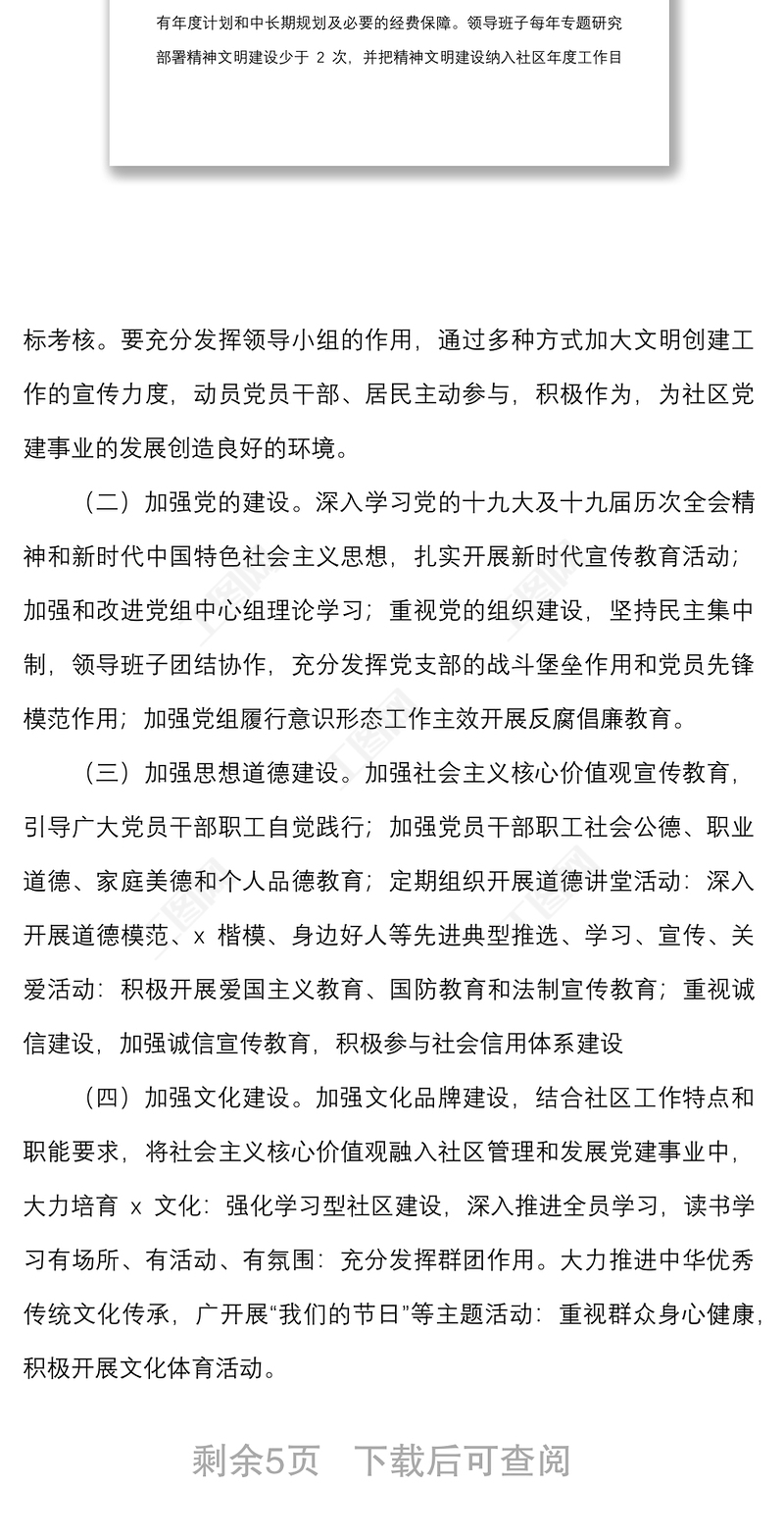 2篇2022年精神文明建設工作計劃范文2篇社區(qū)鄉(xiāng)鎮(zhèn)文明社區(qū)創(chuàng)建