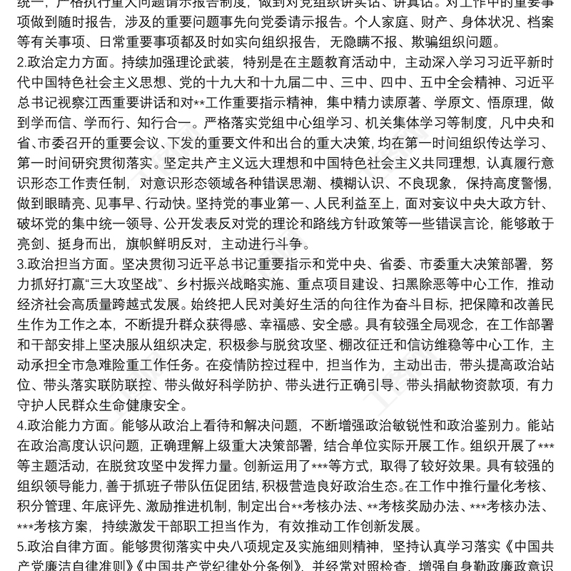 2022政法干警政治素質(zhì)五個方面自評報告500字2022年度單位黨組政治生態(tài)自查報告2022公安干警政治素質(zhì)自查自評報告2022政治監(jiān)督專項檢查自查報告2022年市場監(jiān)管政治素質(zhì)考察自評報告2022學(xué)校校長政治素質(zhì)表現(xiàn)自查自評2022農(nóng)村發(fā)展黨員違規(guī)違紀(jì)問題排查整頓自查報告2022縣處級領(lǐng)導(dǎo)干部政治素質(zhì)考察自評報告2022轉(zhuǎn)作風(fēng)強素質(zhì)自查報告2023黨員教師主題教育自查報告自評剖析2023主題教育自查報告自身不足2023主題教育自查報告審查對照入黨誓詞2023主題教育評自查評估報告2023教師個人主題教育自查報告2023干部個人主題教育自查報告2023政治部門主題教育自查報告