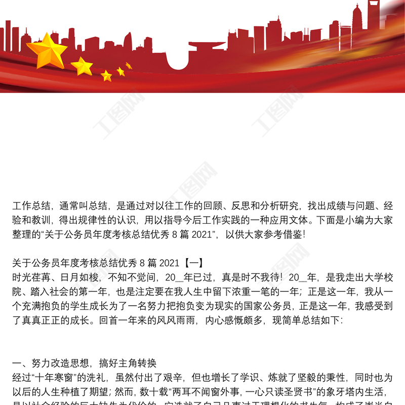 工圖網(wǎng)提供關(guān)于公務(wù)員年度考核總結(jié)優(yōu)秀8篇2021供會(huì)員免費(fèi)下載。更多精彩黨課PPT素材,盡在工圖網(wǎng)。