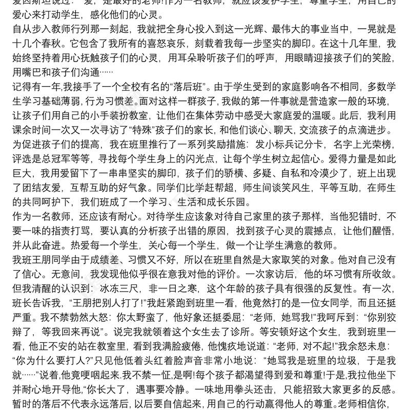 競(jìng)選優(yōu)秀教師演講稿_優(yōu)秀教師演講稿——用愛心換取一份真情包含