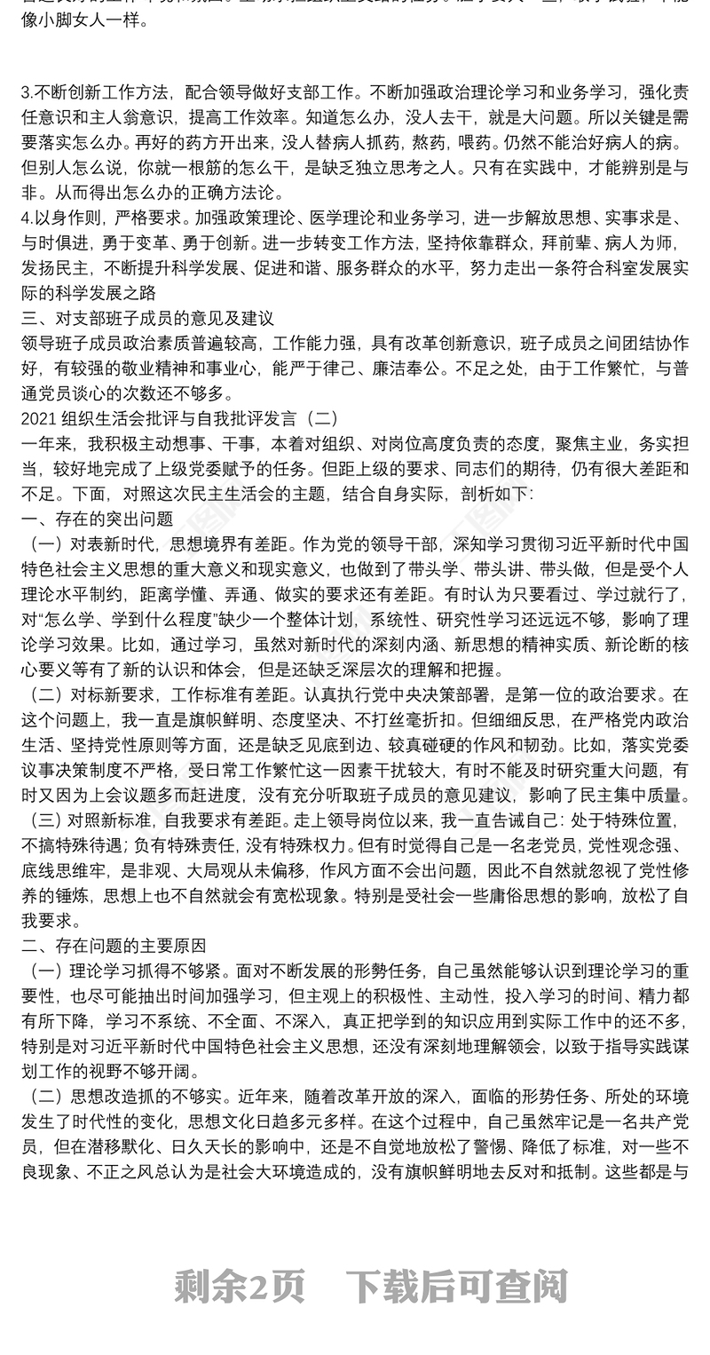 > 組織生活會(huì) > 2021組織生活會(huì)批評(píng)與自我批評(píng)發(fā)言.DOCX 【圖片、文字、動(dòng)畫(huà)均可編輯】