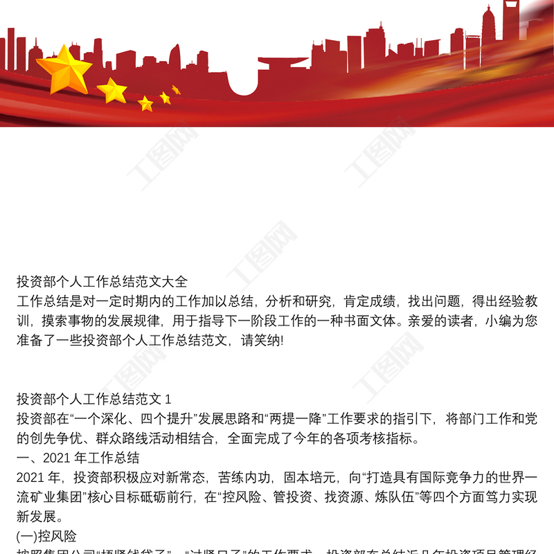 工圖網提供投資部個人工作總結范文大全供會員免費下載。更多精彩黨課PPT素材,盡在工圖網。
