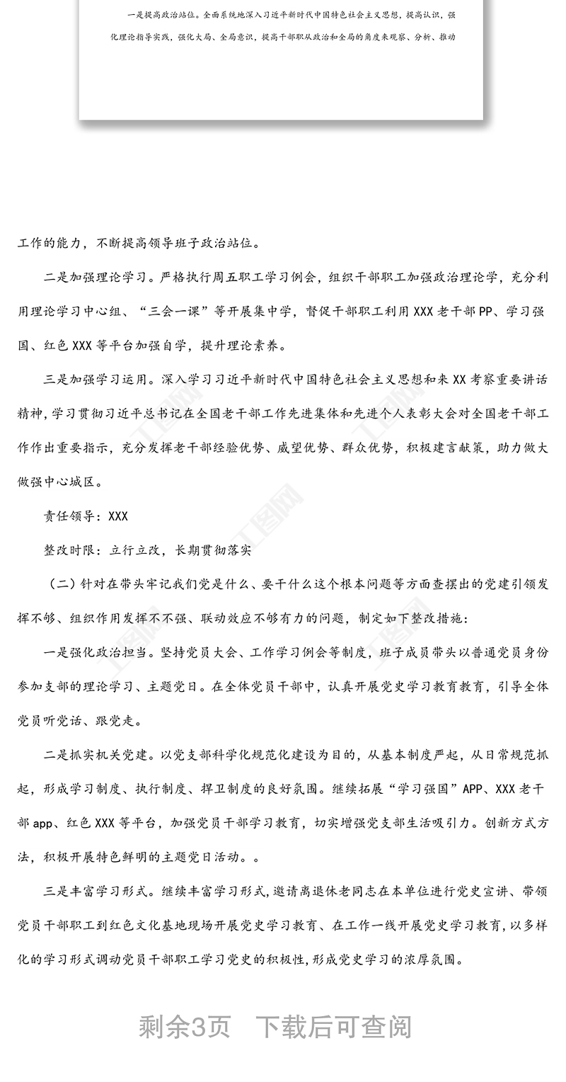 > 民主生活會(huì) > 老干局黨支部領(lǐng)導(dǎo)班子學(xué)習(xí)教育專題民主生活會(huì)整改方案.DOCX 【圖片、文字、動(dòng)畫均可編輯】