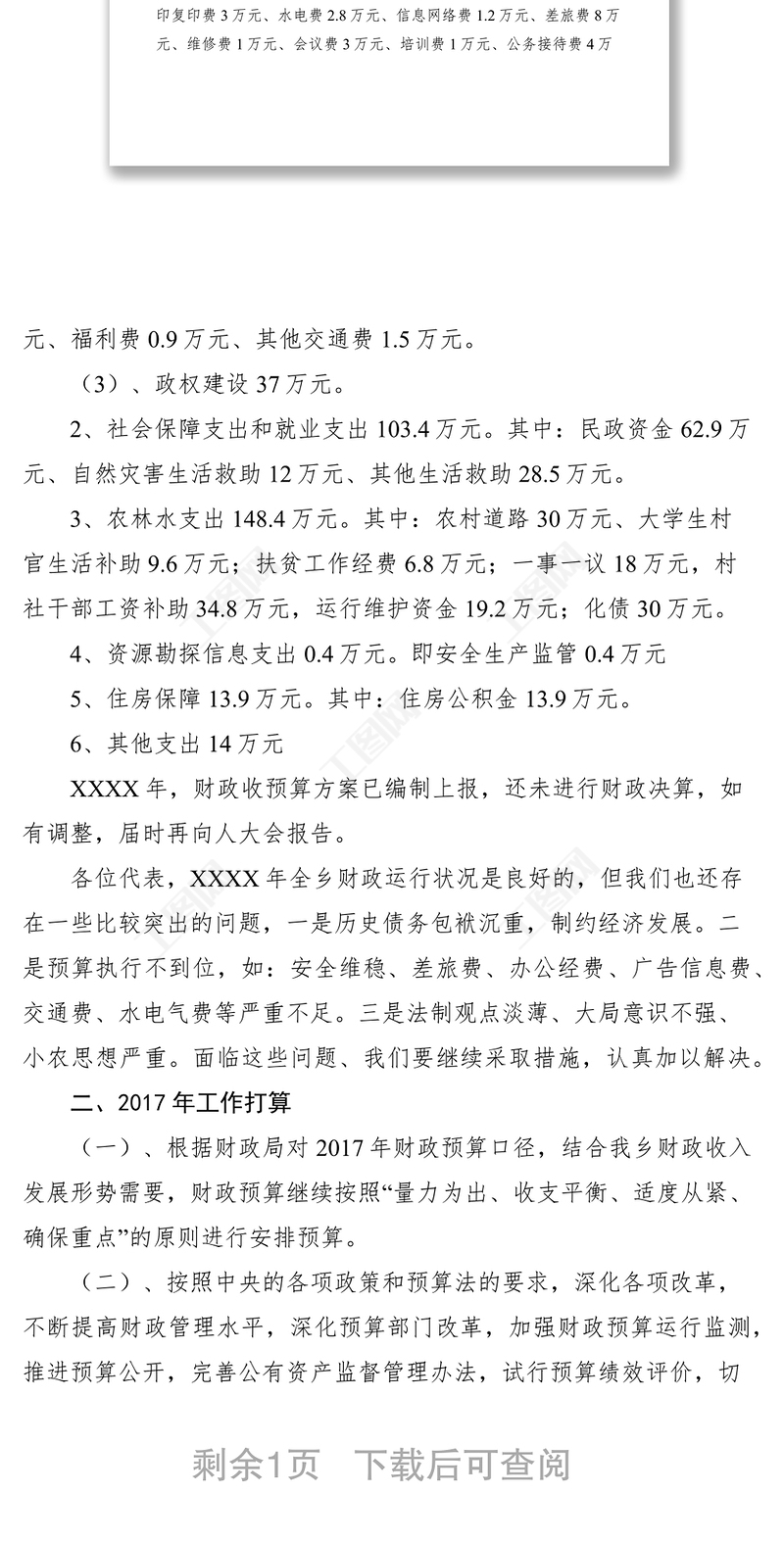 2021鄉(xiāng)鎮(zhèn)XXXX年財政預(yù)算執(zhí)行情況報告