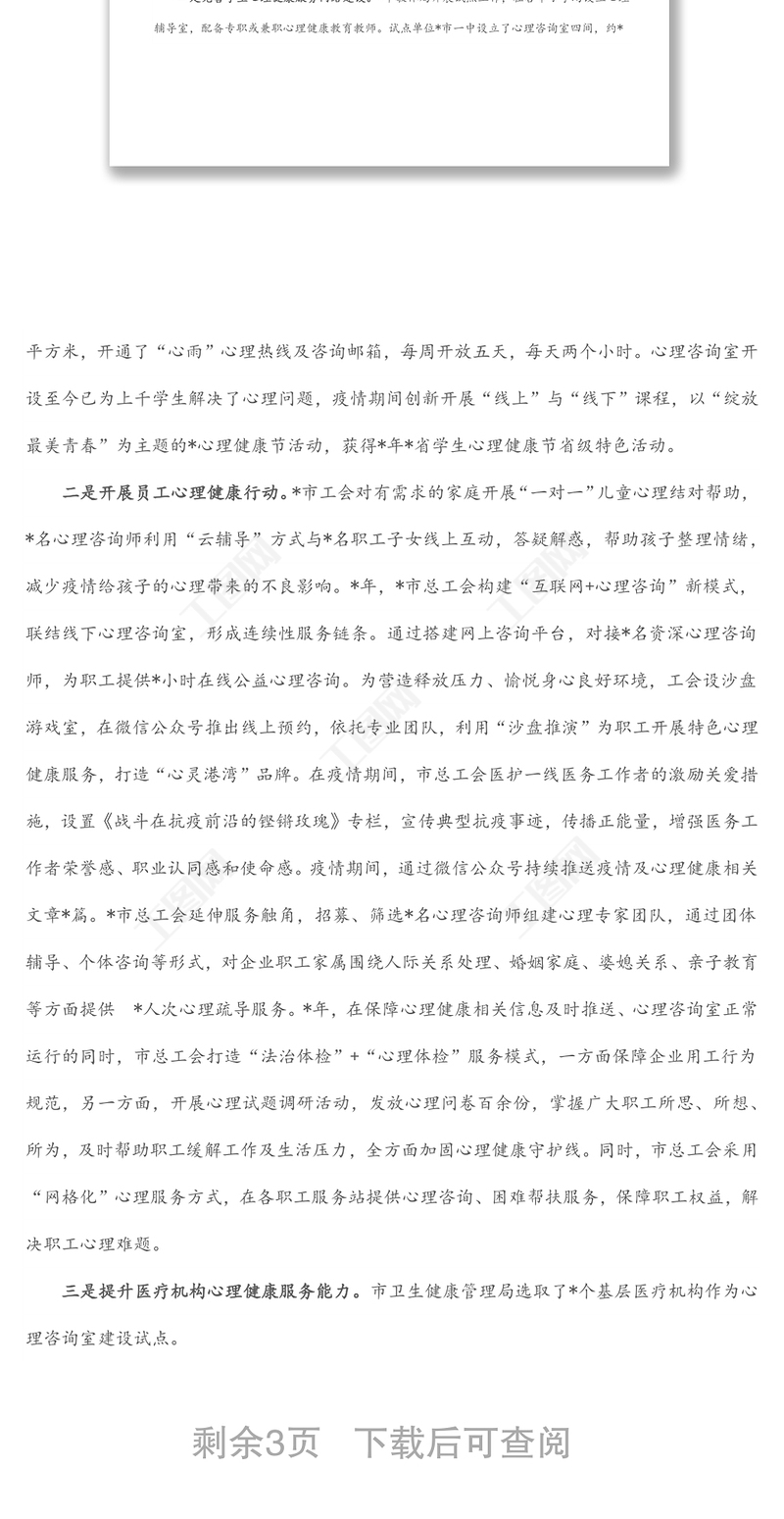 市心理服務(wù)體系建設(shè)情況工作匯報(bào)