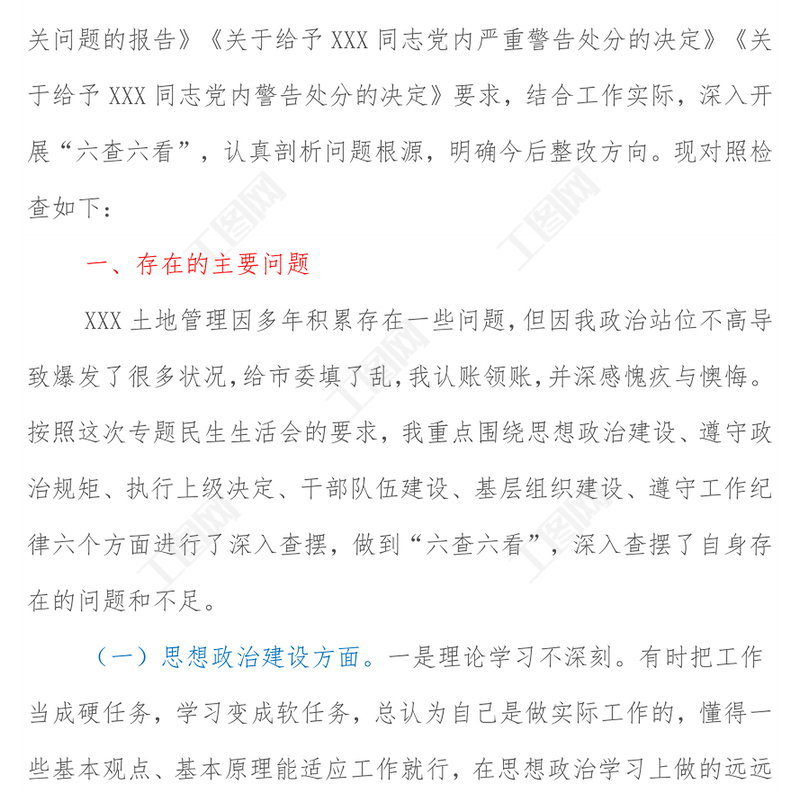 工圖網(wǎng)提供在“深化思想作風(fēng)紀(jì)律整頓加強領(lǐng)導(dǎo)班子和干部隊伍建設(shè)”專題民主生活會上的發(fā)言供會員免費下載。更多精彩黨課PPT素材,盡在工圖網(wǎng)。
