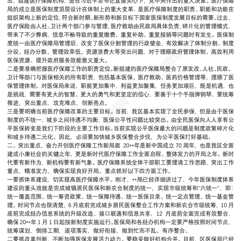 在全年醫(yī)療保障工作分析會上的講話 Array