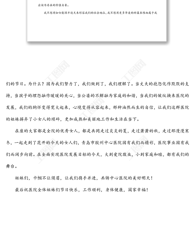 工圖網(wǎng)提供三八婦女節(jié)演講稿:立志巾幗建功助推醫(yī)院發(fā)展供會員免費(fèi)下載。更多精彩黨課PPT素材,盡在工圖網(wǎng)。