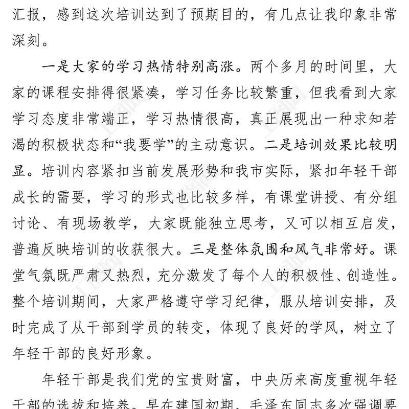 在全市青年干部培訓(xùn)班開班式上的講話干部培訓(xùn)工作總結(jié)包含