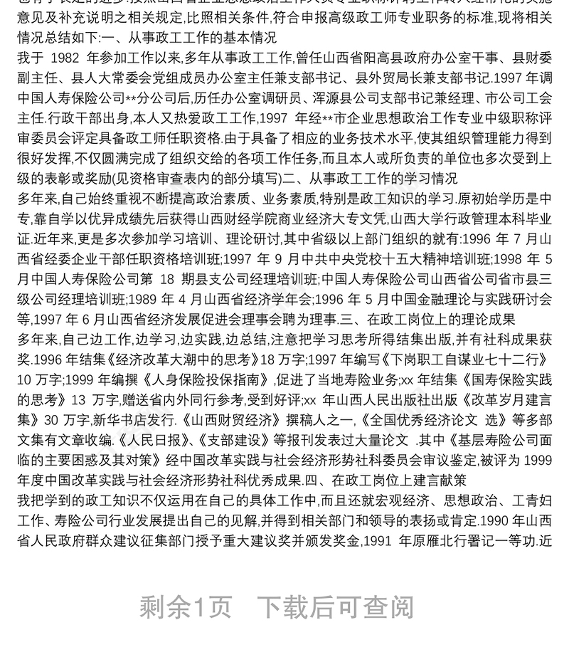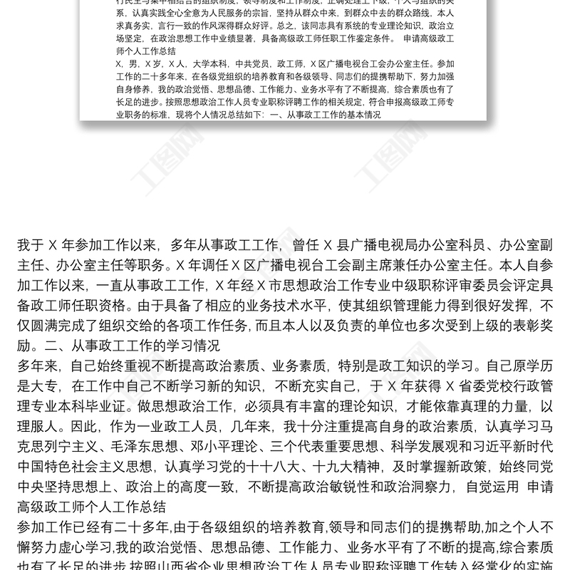 工圖網(wǎng)提供申請(qǐng)高級(jí)政工師個(gè)人工作總結(jié)供會(huì)員免費(fèi)下載。更多精彩黨課PPT素材,盡在工圖網(wǎng)。