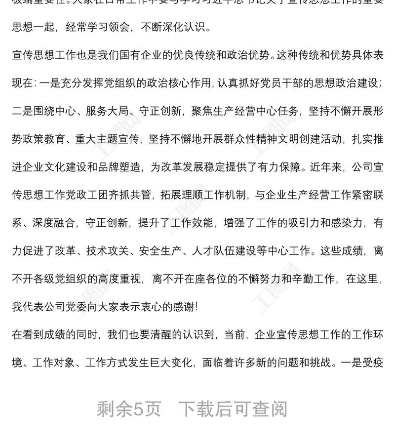 工圖網(wǎng)提供董事長(zhǎng)在2022年宣傳思想工作會(huì)議上的講話供會(huì)員免費(fèi)下載。更多精彩黨課PPT素材,盡在工圖網(wǎng)。