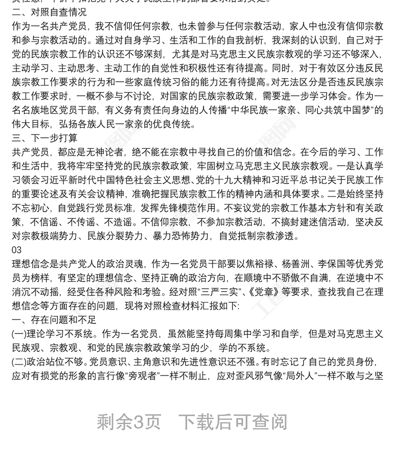 工圖網(wǎng)提供2021“共產(chǎn)黨員不準(zhǔn)信仰宗教和不參與宗教活動”個人對照檢查材料5篇供會員免費(fèi)下載。更多精彩黨課PPT素材,盡在工圖網(wǎng)。