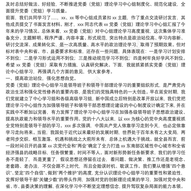 在黨委理論學(xué)習(xí)中心組學(xué)習(xí)巡聽(tīng)旁聽(tīng)會(huì)議上的點(diǎn)評(píng)講話(huà)