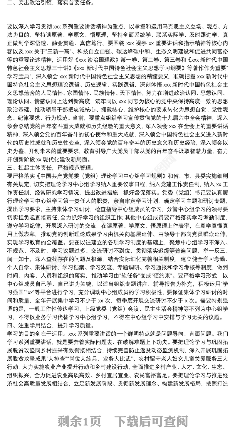 領(lǐng)導(dǎo)在2022年機(jī)關(guān)黨組織書(shū)記抓基層黨建述職評(píng)議會(huì)上的點(diǎn)評(píng)講話(huà)2022國(guó)家安全中心組學(xué)習(xí)發(fā)言2022黨組理論學(xué)習(xí)列席旁聽(tīng)方案2022青年理論學(xué)習(xí)小組會(huì)議記錄執(zhí)法局2021年5月黨史學(xué)習(xí)中心組學(xué)習(xí)會(huì)議記錄2021青年理論小組黨史學(xué)習(xí)教育工作總結(jié)2021黨史學(xué)習(xí)教育理論中心組學(xué)習(xí)研討議程2022年黨組理論學(xué)習(xí)中心組發(fā)言材料2022派駐紀(jì)檢組在民主生活會(huì)上的點(diǎn)評(píng)2021建黨百年中心組學(xué)習(xí)研討發(fā)言2022稅務(wù)局黨委理論學(xué)習(xí)中心組發(fā)言材料2022年中心組學(xué)習(xí)個(gè)人重點(diǎn)發(fā)言人大2022年中心組學(xué)習(xí)計(jì)劃2021學(xué)習(xí) 在慶祝中國(guó)共產(chǎn)黨成立一百周年大會(huì)上的講話(huà) 會(huì)議記錄2022黨組理論學(xué)習(xí)計(jì)劃2023新時(shí)代中國(guó)特色社會(huì)主義思想組織生活會(huì)上的點(diǎn)評(píng)