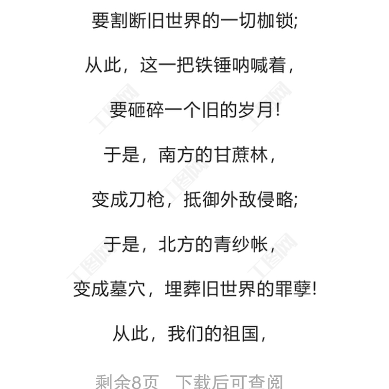 工圖網(wǎng)提供慶祝建黨100周年贊美黨的詩歌朗誦5篇供會員免費(fèi)下載。更多精彩黨課PPT素材,盡在工圖網(wǎng)。
