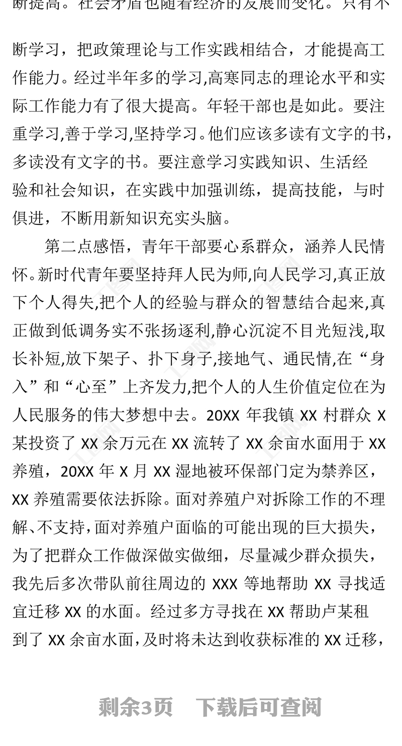 2022青年干部能力作風(fēng)建設(shè)暨墩苗育苗計(jì)劃交流座談會(huì)發(fā)言匯編2021青年干部青春心向黨奮進(jìn)新征程演講稿2021鄉(xiāng)鎮(zhèn)黨委書記組織生活會(huì)剖析材料2021青年干部座談會(huì)上的交流發(fā)言2021鄉(xiāng)鎮(zhèn)黨委書記對縣紀(jì)委提工作建議2021縣長書記礦山企業(yè)高質(zhì)量發(fā)展座談會(huì)講話2023鄉(xiāng)鎮(zhèn)黨委書記黨性分析材料2023青年干部提升干事創(chuàng)業(yè)能力2023青年干部提升干事能力報(bào)告2023青年干部 拒絕躺平 座談會(huì)發(fā)言2023青年干部能力提升交流發(fā)言