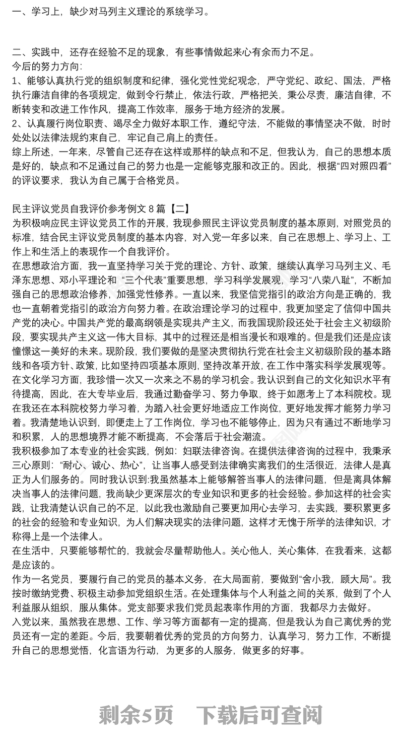 民主評議黨員自我評價參考例文8篇