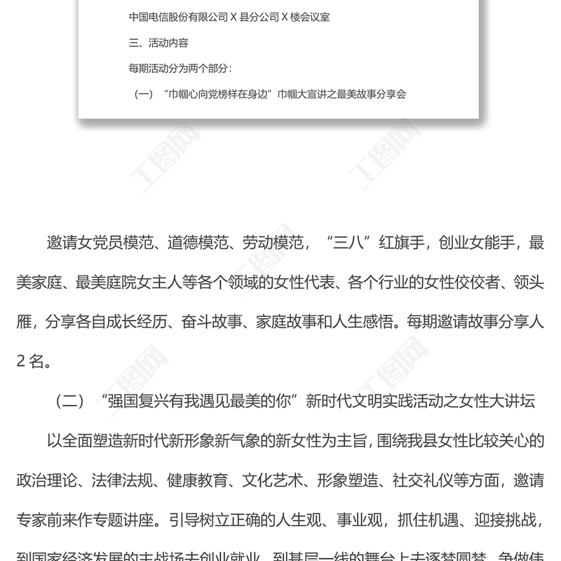 工圖網(wǎng)提供X縣“強(qiáng)國(guó)復(fù)興有我建功新時(shí)代”女性大講壇——“學(xué)習(xí)身邊榜樣”活動(dòng)方案供會(huì)員免費(fèi)下載。更多精彩黨課PPT素材,盡在工圖網(wǎng)。