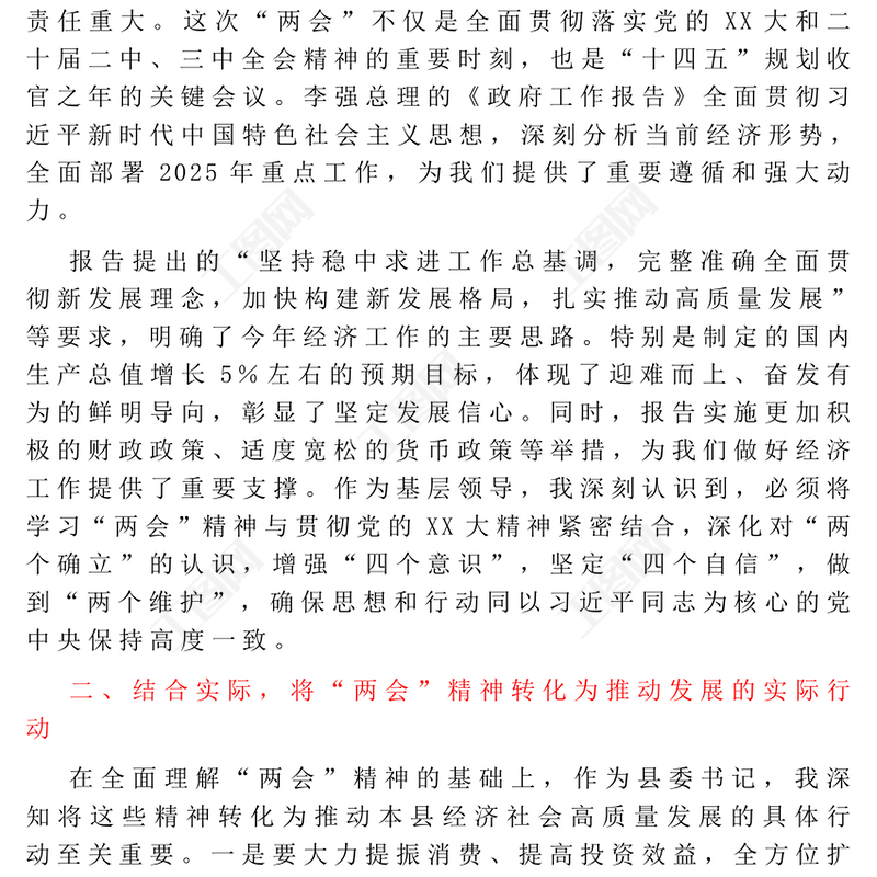 領(lǐng)導(dǎo)干部學(xué)習(xí)貫徹2025年全國“兩會(huì)”精神心得體會(huì) Array