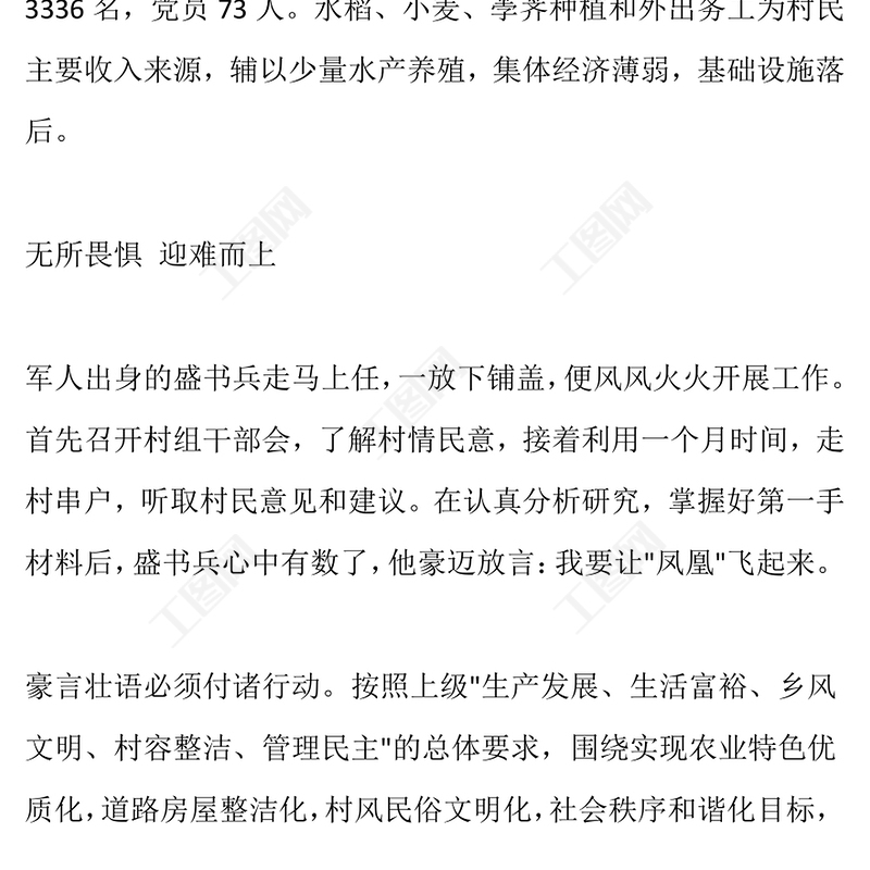 工圖網(wǎng)提供村黨總支第一書記先進(jìn)事跡材料先進(jìn)事跡材料供會員免費(fèi)下載。更多精彩黨課PPT素材,盡在工圖網(wǎng)。