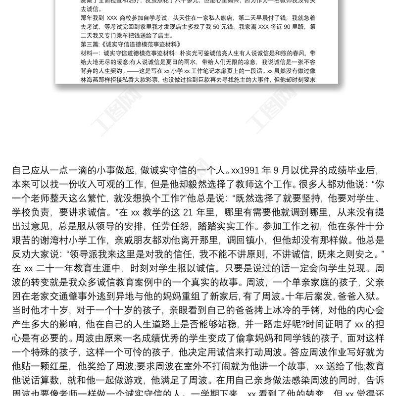 工圖網(wǎng)提供三篇誠實守信人物先進事跡材料供會員免費下載。更多精彩黨課PPT素材,盡在工圖網(wǎng)。