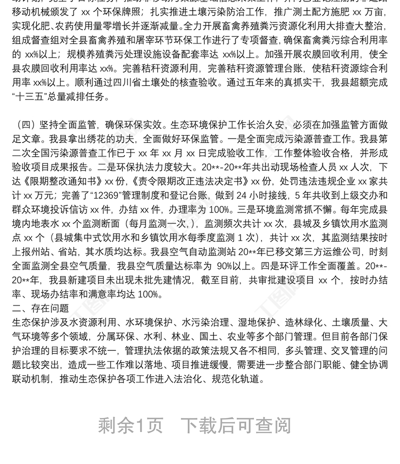 XX縣生態(tài)環(huán)境保護(hù)工作開展情況匯報材料