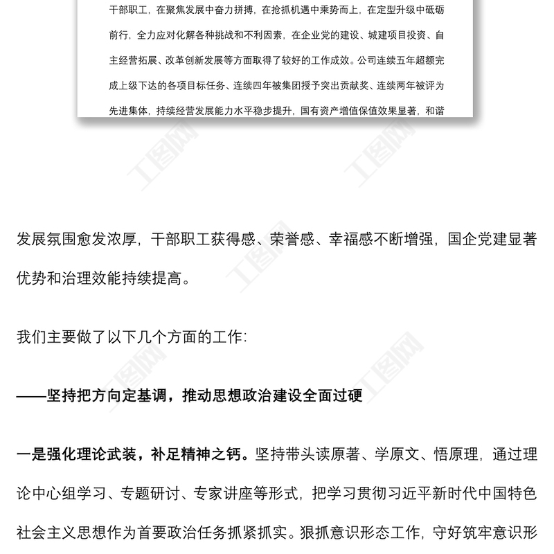 工圖網(wǎng)提供國(guó)企黨委換屆工作報(bào)告供會(huì)員免費(fèi)下載。更多精彩黨課PPT素材,盡在工圖網(wǎng)。