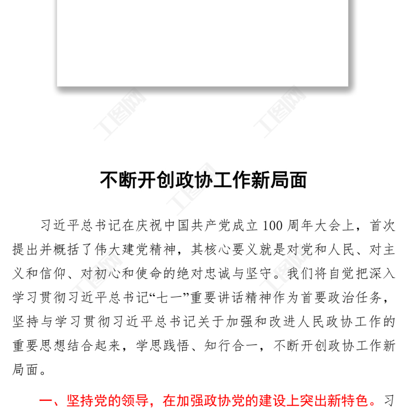 工圖網(wǎng)提供七一精神結(jié)合政協(xié)工作研討發(fā)言10篇供會(huì)員免費(fèi)下載。更多精彩黨課PPT素材,盡在工圖網(wǎng)。