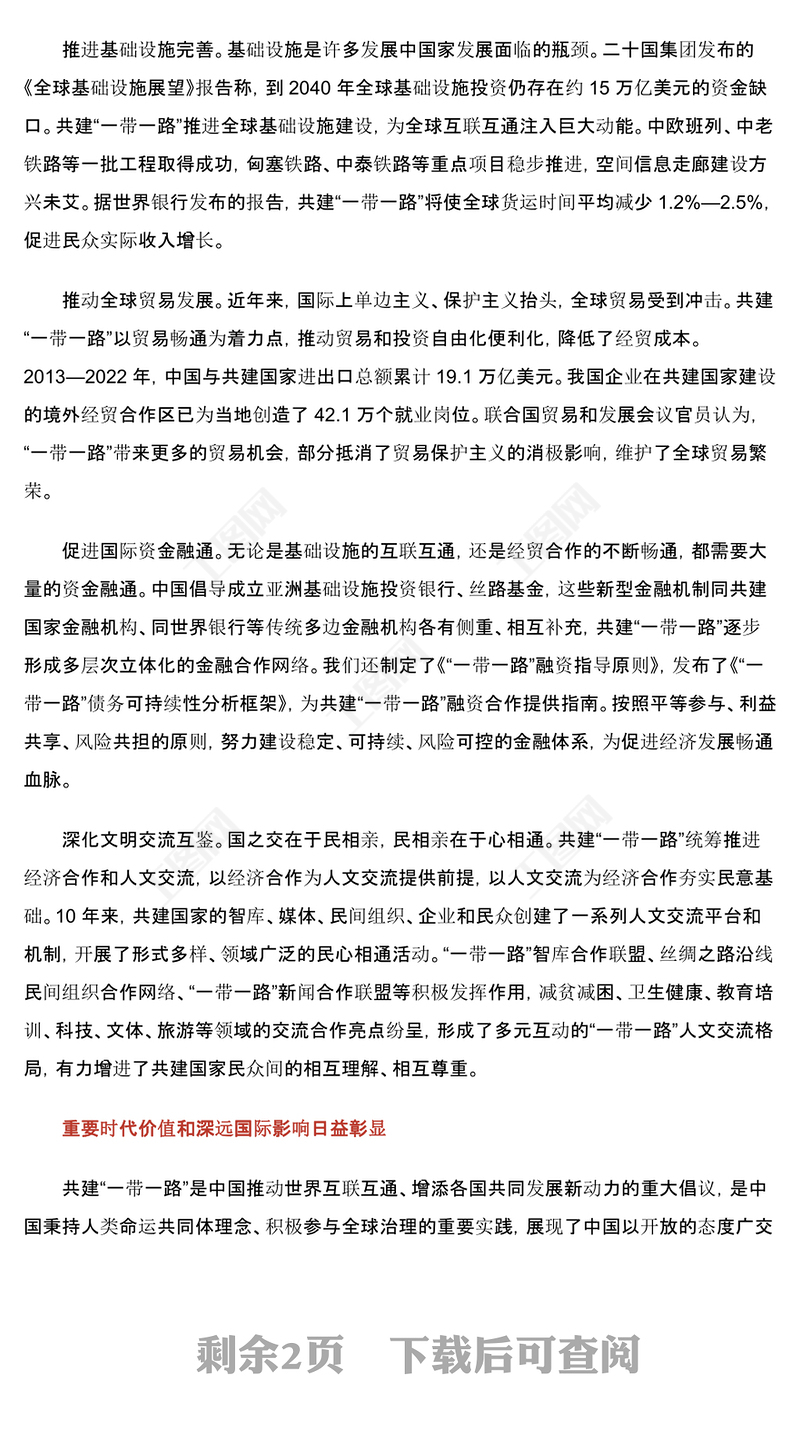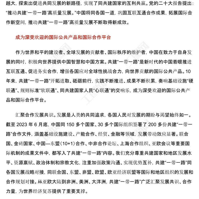 首頁(yè) > WORD文檔 > 2023推動(dòng)共建“一帶一路”高質(zhì)量發(fā)展不斷取得新成效ppt紅色極簡(jiǎn)風(fēng)共建“一帶一路”承載和平、發(fā)展、合作、共贏的時(shí)代價(jià)值黨建專題微黨課(講稿).DOCX 【圖片、文字、動(dòng)畫均可編輯】