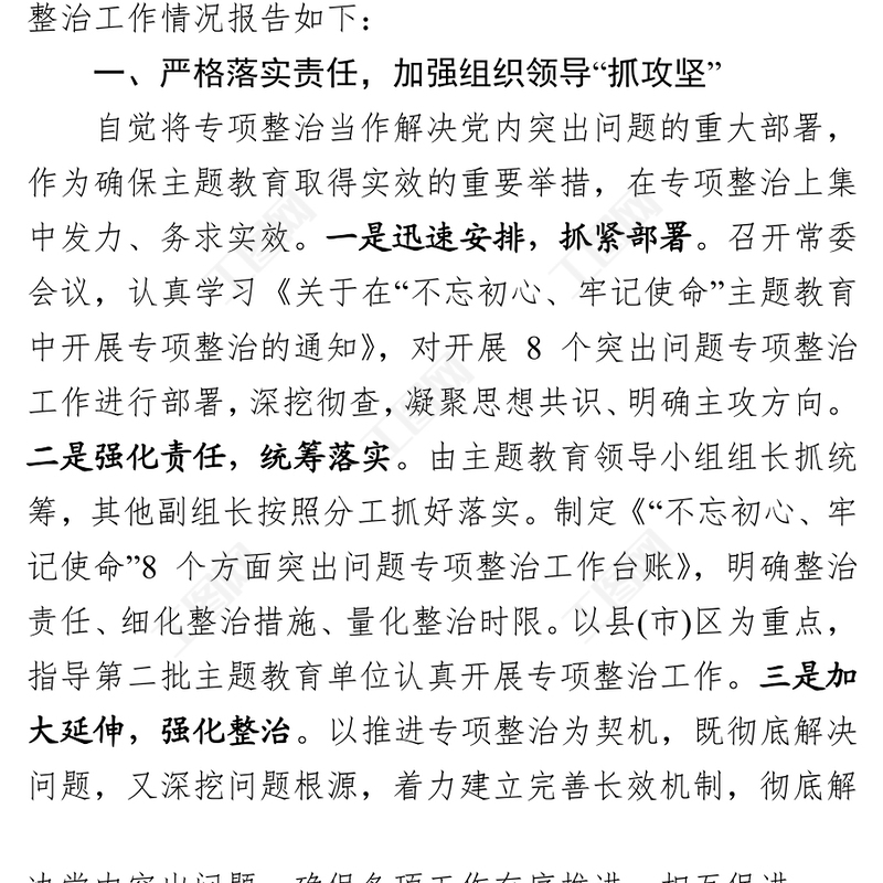 不忘初心牢記使命主題教育,專項整治回頭看工作總結(jié)報告,不忘初心牢記使命主題教育,公文范例,領(lǐng)導(dǎo)述職報告,機關(guān)公文寫作 Array