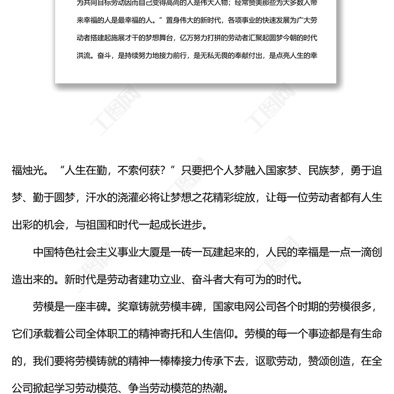 工圖網(wǎng)提供國網(wǎng)公司研討發(fā)言:新時代如何更好地向勞模學(xué)習(xí)供會員免費下載。更多精彩黨課PPT素材,盡在工圖網(wǎng)。