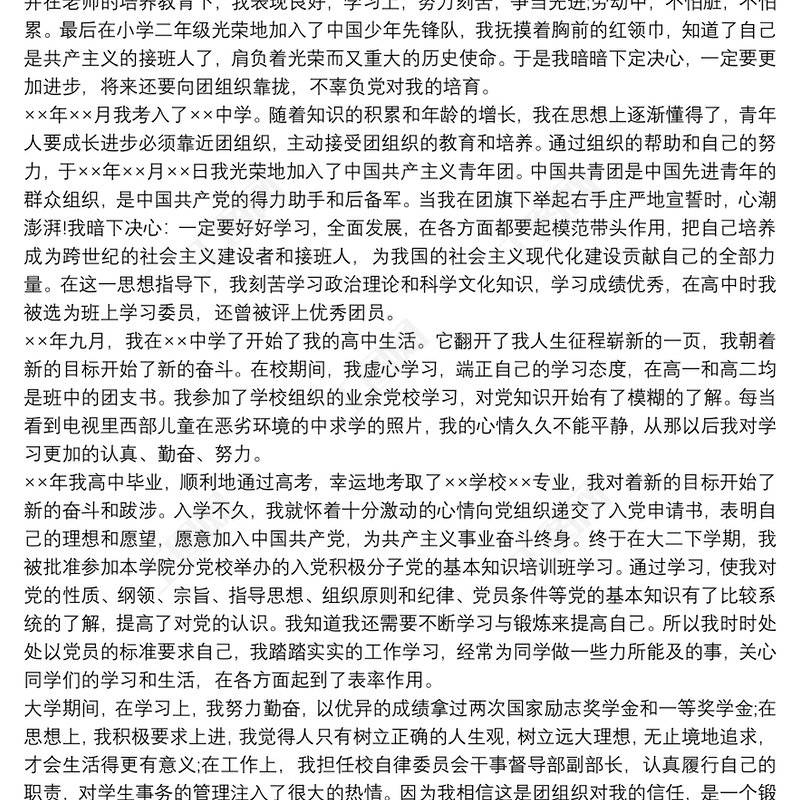 預備黨員入黨個人自傳范文三篇 Array